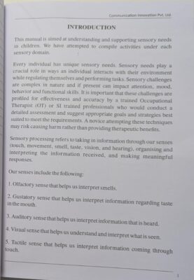 This manual compiled by Nirmala Danu, Neethu Krishnan & Preeja Balan from Octave Speech Center, Bengaluru; introduces the nuances of the sensory issues faced by children with ASD to families and therapists along with simple instructional guides and colorful illustrations, to help the children cope with these sensory issues and reduce their interference in acquiring and managing everyday life skills. We trust that this will be handy in understanding and supporting your child with sensory issues better.